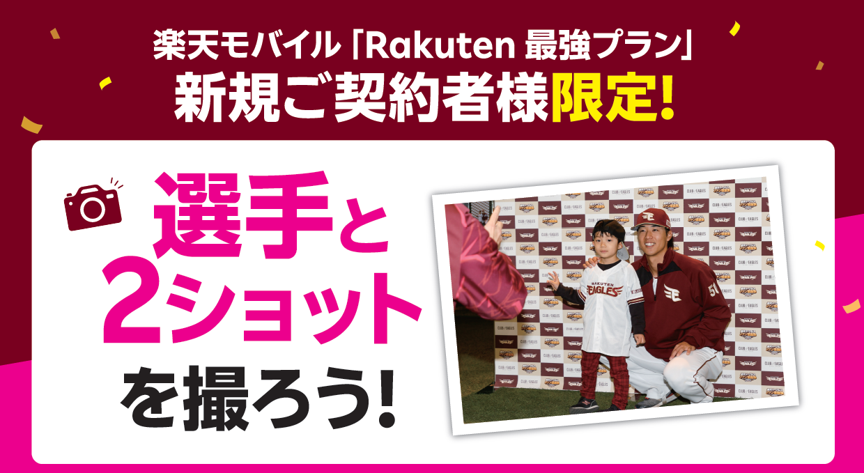 イーグルスは今年も一軍公式戦主催試合で、当日現地で楽天モバイルお申し込みでイーグルス選手とツーショット写真撮影ができるイベントを開催しています。対象となる選手は当日1軍に帯同している選手から日替わりで3選手が選ばれ(稀に2選手)、試合開始の数時間前に公開されます。
